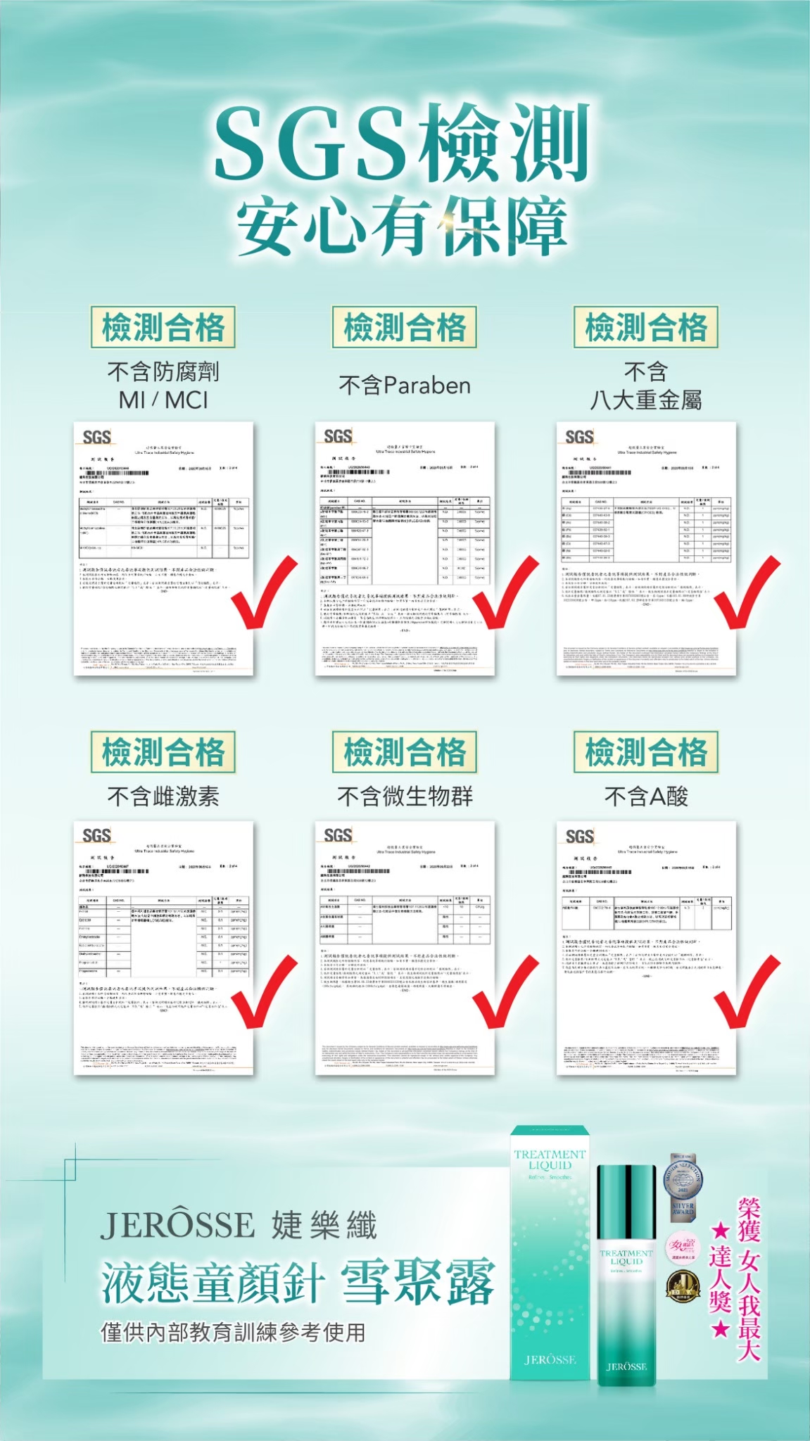 婕樂纖雪聚露雙效導入精華通過SGS檢測認證。