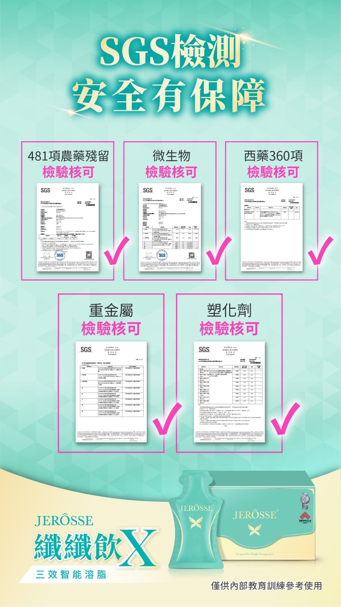 婕樂纖 纖纖飲X 通過SGS檢測合格,請安心食用。