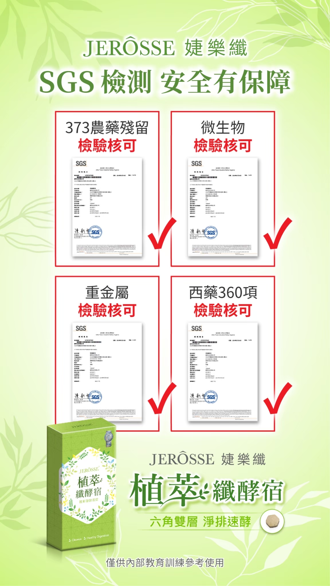 婕樂纖植萃纖酵宿SGS檢測合格。
