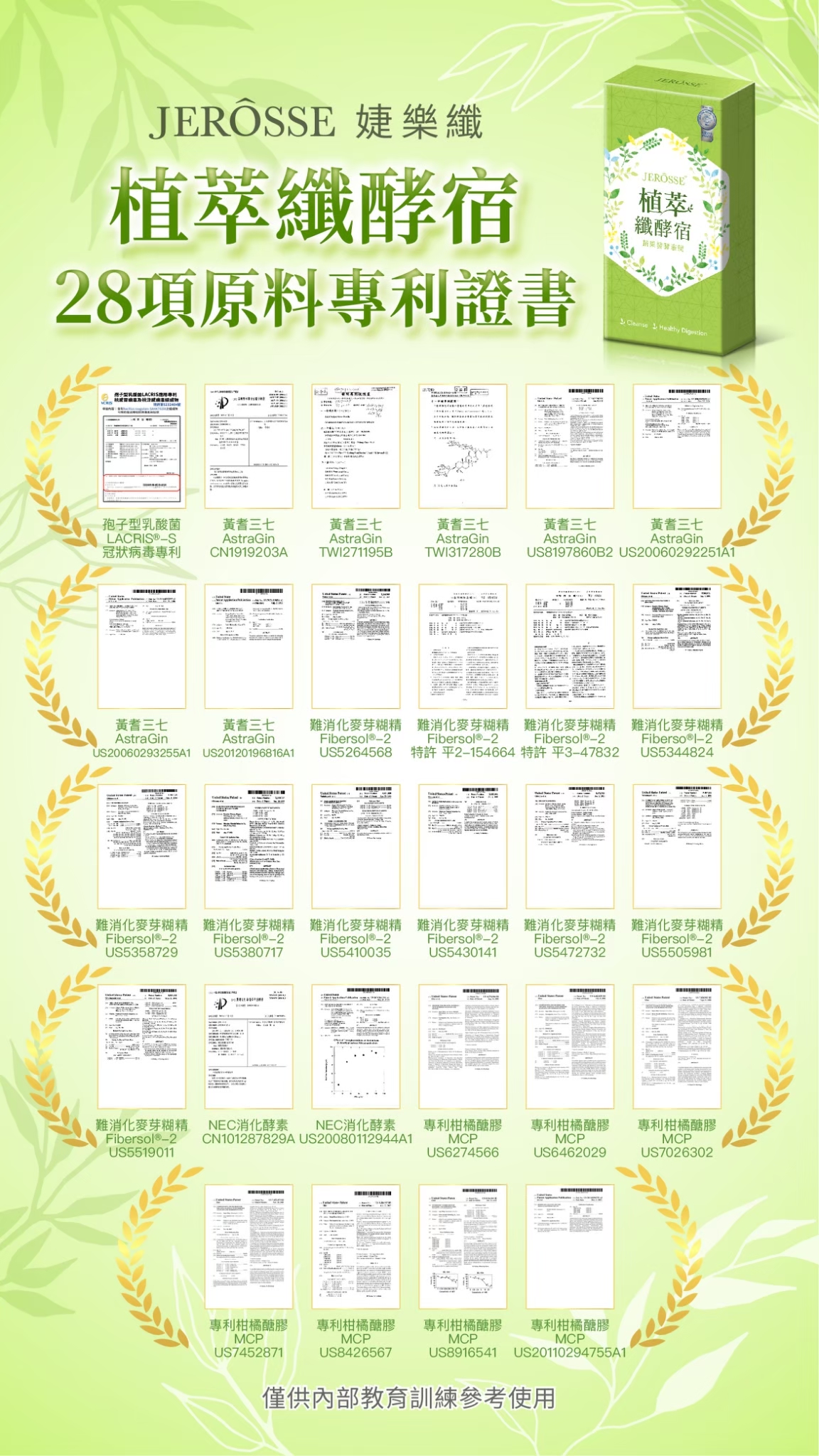 婕樂纖植萃纖酵宿取得28項原料專利證書,榮獲2021世界品質評鑑大賞銀獎。